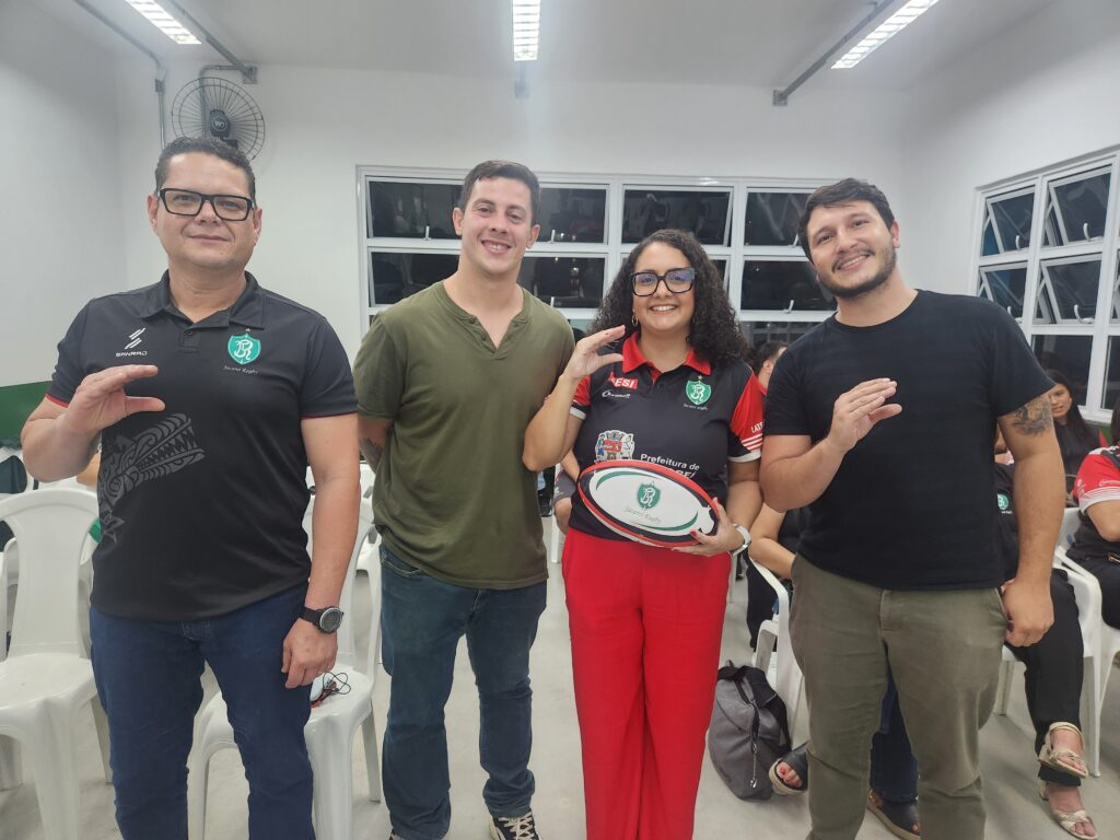 A diretoria eleita para a próxima gestão do Jacareí Rugby: (Da esquerda para a direita) Rogério Cunha, Luiz Gustavo Andreoti, Jessica Bernardino, Wendell Ferraz – Foto: Ícaro Leal/Jacareí Rugby